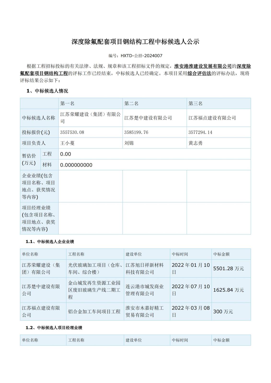深度除氟配套項目鋼結(jié)構(gòu)工程中標(biāo)候選人公示